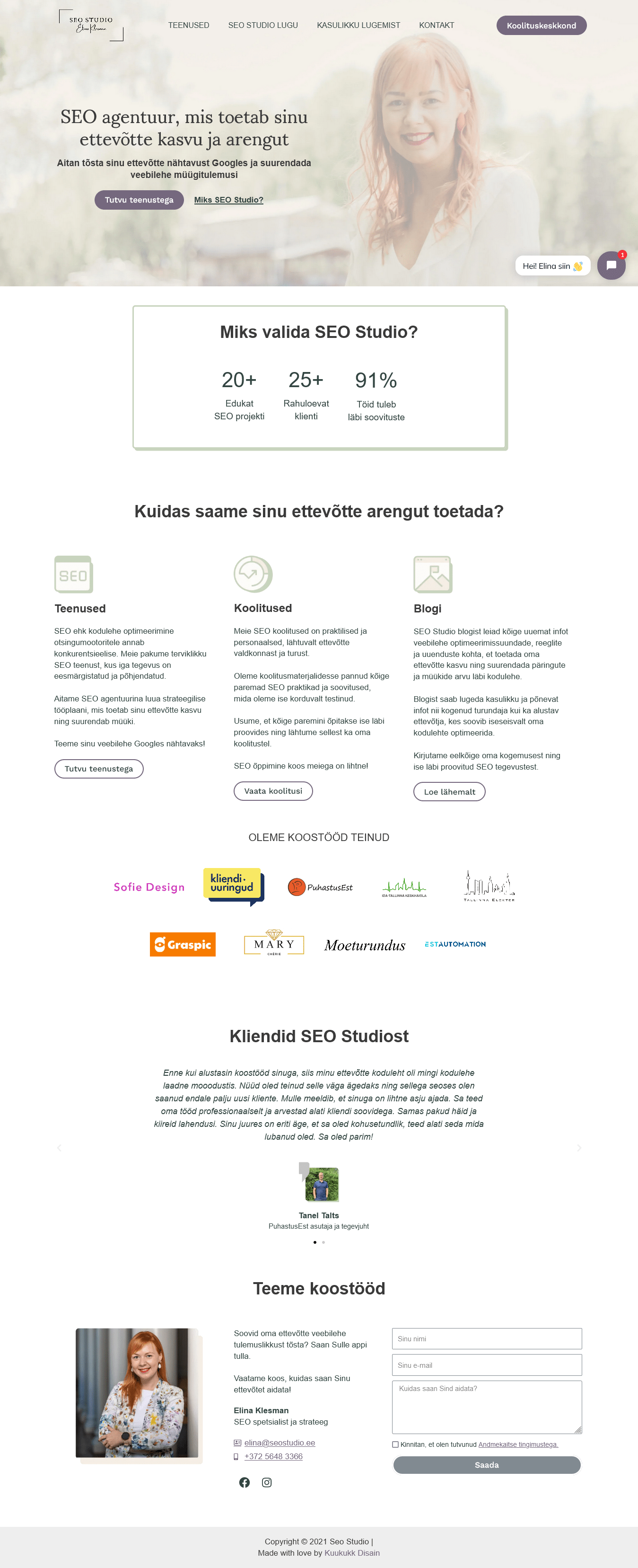 Kuukukk Disaini ülesandeks oli kodulehe struktuuri paika panek, sitemapi loomine ja SEO Studio kodulehe visuaali loomine. Seejärel ehitasime kodulehe üles WordPressi platvormile.
