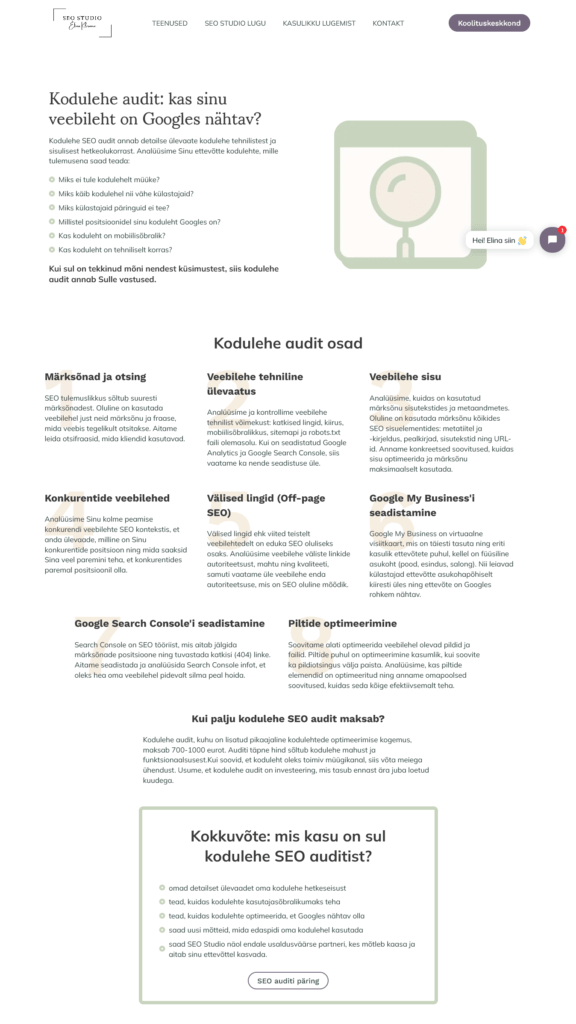 Elinal on suur missioon tuua SEO teadmised kõigi soovijateni ning peagi valmib ka Seo Studio koolituskeskkond.